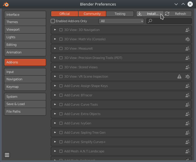 After downloading the add-on, you need to install it. The installation takes place directly in Blender. The installation controls may be located differently in different versions of Blender.